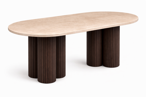 Alle gegevens bekijkenTravertin Eettafel – Ovale Elegantie in Natuursteen (200 x 100 cm)