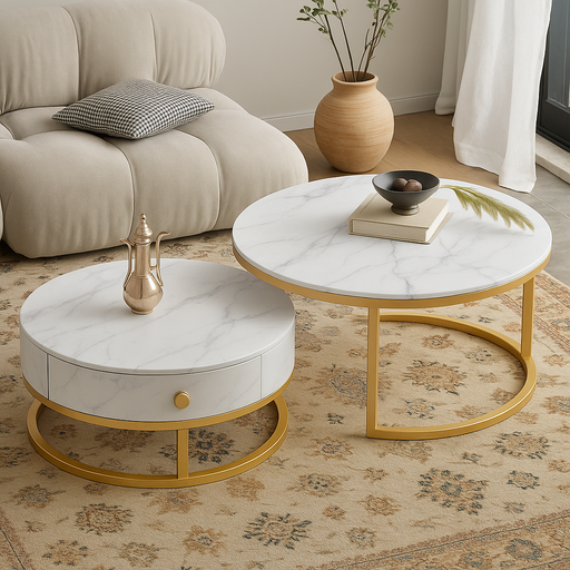 White and BlackMinimalistisch design, maximale impact.Deze stijlvolle set van twee ronde salontafels brengt elegantie en functionaliteit samen in één ontwerp. Met...