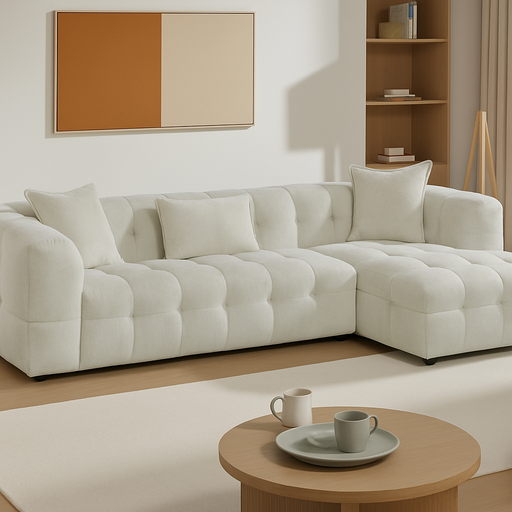 Mira | L-vormige Hoekbank in Crèmekleurige Stoffering