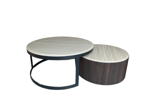 Alle gegevens bekijkenFOX BLACK / BROWN DOUBLE TABLE – Luxe Set van Twee Salontafels (Ø80 & Ø90 cm)